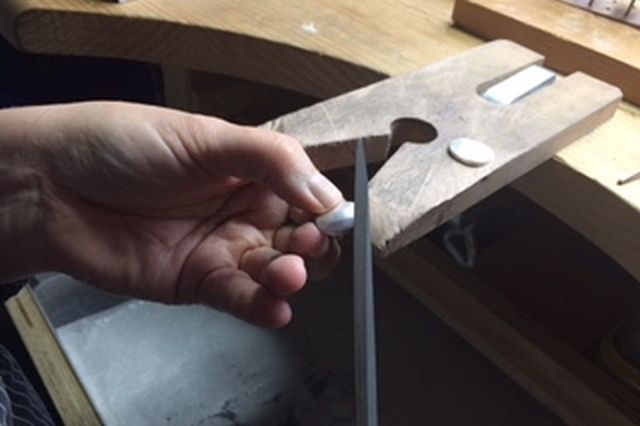 Stap voor stap wordt het goud gevijld, geschuurd en met de hand gevormd tot een elegante, unieke hanger.