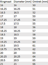 ​Hierbij vind je een maattabel om je ringmaat op te zoeken.