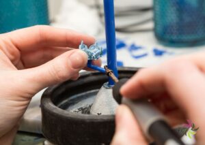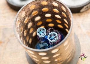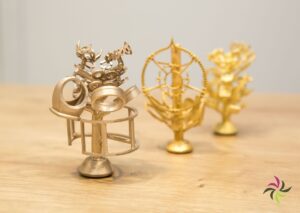 As soon as your wax model is ready, it is placed on a tree-like wax structure (casting tree) which eventually creates paths along which the molten casting material can flow and air can escape. This is a real precision work as the wax models are very fragile, and we don’t want any pieces to break off.