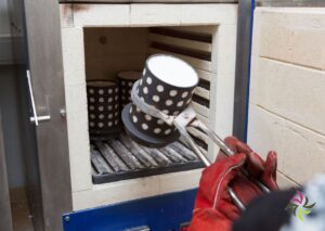 As soon as the moulding tree is completely filled with all kinds of wax models, it is weighed in order to be able to subsequently calculate the amount of molten precious metal that needs to be added. It is then placed in a steel tube or flask and filled with refractory plaster, which has to harden in an oven. This process takes about 12 hours, during which the furnace is brought to the desired temperature in several steps.