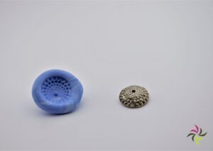 A first method is to make moulds. A mould is made from the original model or image by making a print in rubber from an existing shape. This is then baked in the oven. The rubber mould is then cut loose, and the existing jewel is skilfully removed. In this way you get a negative form of your ring or pendant or other jewel. Then you have a wax model of your design and you can re-create it several times. Your rubber mould is injected with liquid wax.